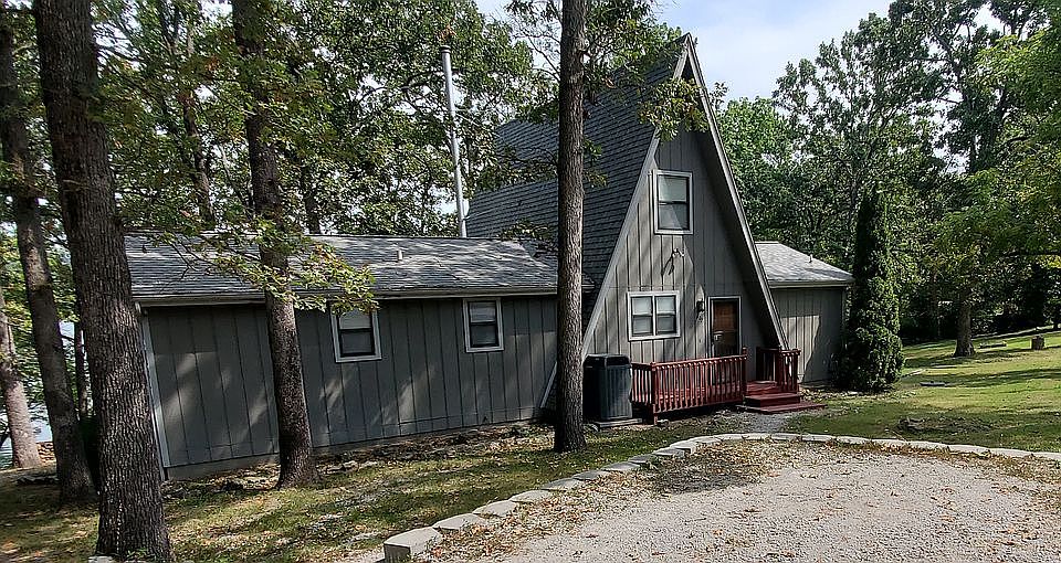 This adorable A-Frame home, built in 1985, sits on the shoreline of Table Rock Lake, approximately 6 miles from Hollister, MO and 1 mile from Table Rock Lake State Park and Marina, in the Poverty Point sub-division, a well-established and safe neighborhood. In addition to being near lake access at the state park, there is a public boat ramp at the entrance of the sub-division. The home is approximately 1,400 square feet with 2 bedrooms, 2 baths, living room, large kitchen, utility room and a spacious loft which could be used as a 3rd bedroom or office. The roof was re-shingled in 2020, has a remaining1 year workmanship warranty, and a 20 year warranty on the shingles. A new chimney pipe was installed during the roof repair and there’s a beautiful new wood stove by Hearthstone that will keep you warm and toasty all winter long! The detached storage shed houses the well pump and there’s a large crawl space under the house to store lawn and lake equipment. The most fabulous aspect is the LARGE wrap-around deck with VIEWS of the LAKE! From the master bedroom, the living room, and the kitchen you can enjoy the lake from sunrise to sunset. Relax on the deck with your morning coffee or in the evening after a long day and just let the world go by! Or, if you’re a fishing enthusiast, grab your pole and walk down to the water’s edge and enjoy! In addition to the home itself, there are 2+ adjoining vacant lots included in the sale. The home has been well-maintained and will be sold in an “As Is” condition. Other features include: dishwasher, stove, water softener, hot water heater, Trane AC/Furnace, ceiling fans throughout, 2 outside water faucets. LAKELAND BEACH LTS 1 & 2 & N 37' LT 3 BLK C & N2 VAC LAKE ST ADJ TO LT 1 (AND ADJOINING VACANT LOTS) LAKELAND BEACH LT 4 & 5 & S 12' LT 3 BLK C