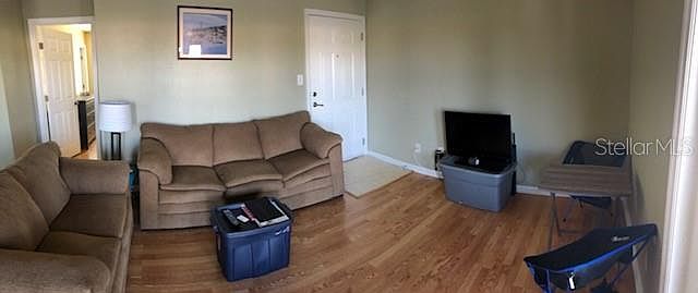Hurry to view this beautiful 1 bedroom 1 bath water view condominium. Once you pull through the gates at the Gated Resort style community, you will not want to leave. This updated condo has laminate wood floors throughout. The 2nd floor balcony overlooks a lovely pond. Your potential new home features 561 square feet of living space which seems to be more spacious because of the open floor plan. Enjoy fixing your favorite meal in the updated galley kitchen with ceramic tile floors. This is a 24 -hour gated community with multiple amenities which includes miles of waterfront paths, a community pool, access to the tennis courts, a fitness center, recreation center including a pool table, and so much more. Minutes from downtown Saint Petersburg making it just a short drive to restaurants, entertainment, shopping and the gulf beaches. Laundry on site. NO PETS. Schedule a showing today!