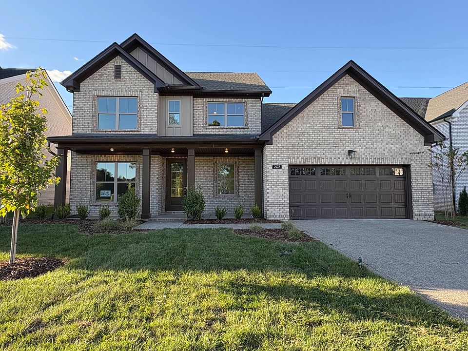 Welcome to the sought-after Saundersville Station community and the stunning Ellington floor plan! This all-brick, 2-story home offers 3 bedrooms, 2.5 baths, and 2,440 sq ft of well-designed living space. The selections package showcases luxury laminate flooring in main areas, plush carpet in bedrooms, and designer tile in baths. The main level features a spacious living room with a gas fireplace, a gourmet kitchen with quartz countertops, stainless appliances, and a pantry, plus a bright dining room. The main-floor primary suite includes a walk-in closet and a sleek shower-only bath. Upstairs, you’ll find two additional bedrooms, a full bath, and a versatile rec room. Enjoy outdoor living on your covered patio and the convenience of a 2-car front-entry garage. Ask us about our preferred lender and seller incentives!