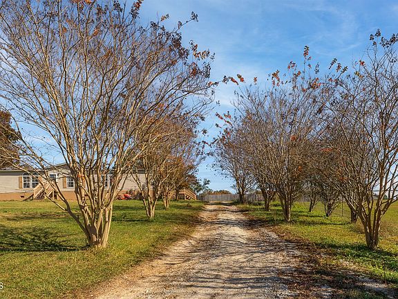 Home off the beaten path! The house sets at the end of a quiet dirt road with a large front yard. Split floor plan allows for privacy. Large master bedroom with bath has over-sized garden tub with a huge walk in closet. Two extra large size living areas, eat-in kitchen with breakfast bar and pantry. Kitchen opens to deck with a fenced in back yard is ideal for privacy. You have to see this one. Close to Camp LeJeune or the Air Station. Shopping is nearby.