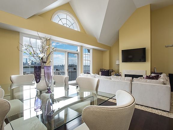 Welcome to Phase I at Jersey City's Port Liberté community. Step into this stunning fully furnished three bed, two-and-a-half bath duplex condo. Entertain your guests in a spacious open concept living room and dining room with vaulted ceiling height. Step out onto one of your two private balconies and take in the sweeping views of Manhattan and the Statue of Liberty. Master bedroom includes an en-suite master bath, great closet space and private balcony. This unit comes with one car garage parking. Enjoy all the luxuries of being part of the Port Liberté community including, two pools, a clubhouse, tennis courts, fitness center, on-site dry cleaning services, and much more. On-site high speed ferry to NYC makes your commute a breeze.