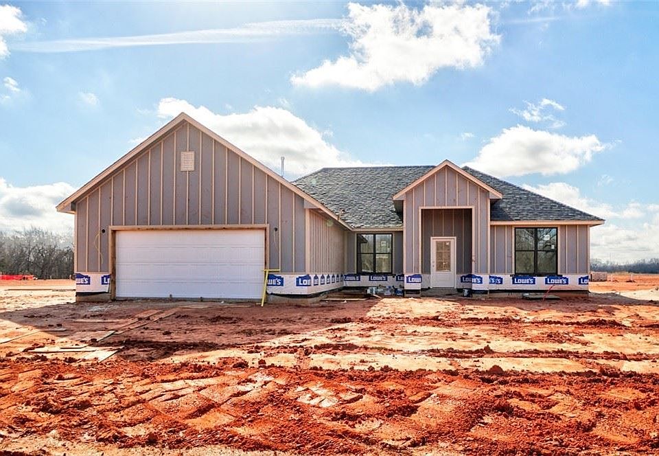 New Greg Brown Homes development in North Rock Creek Schools. Excellent location for OKC commuters - 29 min to Tinker & 34 min to Bricktown. There's so much to love about this home. 3 bed, 2 bath + an office. Open living, dining & kitchen. Kitchen has a large island, lots of counter space and a walk in pantry. The owner's suite has double vanities, an oversized walk in luxury shower and huge walk in closet. The living room features a new state of art touch stone fireplace with a remote that allows a variety of options. Home will be completely sodded and a landscape package. Wood-like tile will be in all living areas and bedrooms will be carpeted. At Shawnee Mall and Kickapoo, go north to the Trails End Addition. Buyers may have the opportunity to make some design selections, if contract is written in time.