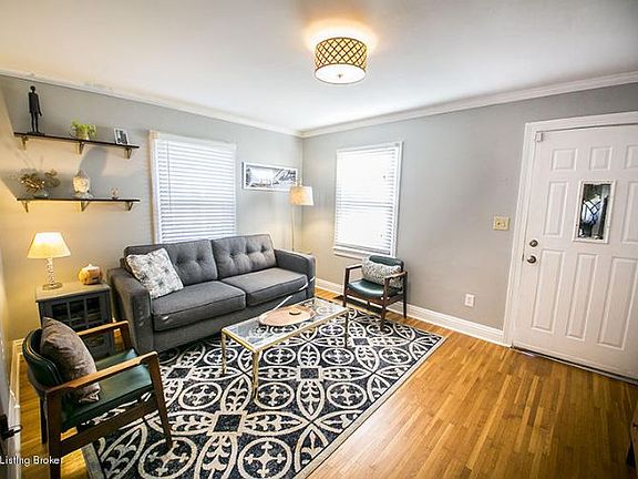 This charming St Matthews cape cod located on a quiet street has so much to offer. Entering the living room you will notice gorgeous original hardwood floors, lots of natural light and a neutral color scheme throughout. Off the central hall are two nice size bedrooms , and an updated full bath with tiled floors and shower. The dining room leads into a modern kitchen complete with white cabinetry, full suite of appliances, and subway tile backsplash. From the kitchen a sunroom overlooks the fully fenced backyard and patio area. The basement is partially finished and offers loads of extra storage as well as living space. You won't want to miss this one! Seller is offering a one year HSA home warranty.