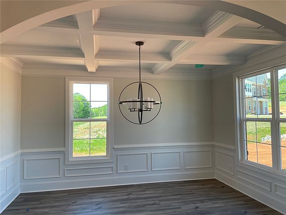 The Rutledge II is a beautiful five bedroom, four-and-one-half bathroom home with an open plan featuring luxury vinyl flooring on the main level. The two-story foyer leads you to the formal dining room with a coffered ceiling and formal living room with French doors that can be a home office if needed. The large great room with a gorgeous, marble surround fireplace flanked by beautiful built in cabinetry is open to the kitchen with island and eat-in area. This space is perfect for entertaining friends and family or hosting those special holidays! The kitchen features a corner pantry, large island, quartz countertops, and stainless gourmet appliances. A guest suite with a full bath and walk-in closet is also located downstairs. Upstairs all secondary bedrooms have large walk-in closets. The primary suite features a sitting area, three (3) walk-in closets, a soaking tub, shower, and water closet. A large bonus room-perfect for a home theater/game room and laundry room with storage cabinets are also located upstairs. Call today to make this beautiful home yours!