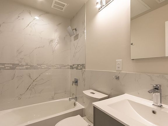 High-end 2 BR/1BA apartment with balcony, fully renovated in 2022 Next to Parks, Tennis Courts, and Recreation Areas Beautiful custom-made kitchen with stone countertop LED under-cabinet lighting Stainless steel complete appliance package Central AC and separate heating European-style windows, black-out shades included Hardwood floor and tiles throughout Video intercom system Security cameras Hardwired for internet and TV cable Laundry in the building No pets policy