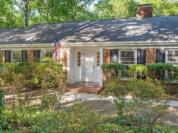 Welcome in to this all brick Traditional home situated on .5 acre of serene and thoughtful landscaping with established trees, flat back yard with path to a stream, inspired terraced steps leading to a fish pond w/fountain and custom curved brick walls graciously surrounding the patio area. Inside is your formal entrance way, living and dining rooms with stately Dentil crown moldings and hardwood floors, spacious eat-in kitchen, large family room with brick fireplace and custom built-ins w/ desk. The Primary bedroom w/ en-suite is on the main floor along with two more large bedrooms, all with hardwood floors, plus a full bath and closets. The walk-out lower level features an additional sun-lit bedroom, finished office/storage room w/ closet, great retro bar complete with fridge and microwave, dining area plus another family living area complete with brick fireplace and built-in bookcases. Another full bathroom and large walk-in storage closet flank the entrance to the extra large garage and workshop area. Tons of parking along a long curved driveway that extends all the way around the back of the home. Newer roof, gutters and brand new HVAC make this fabulous home move-in ready while you update the home with your own flair. Established and still growing area offers so much, including a quick ride to downtown Raleigh. Close to all kinds of shopping and restaurants and medical facilities. Minutes to downtown Garner and U.S. 70. Home is being sold as-is.
