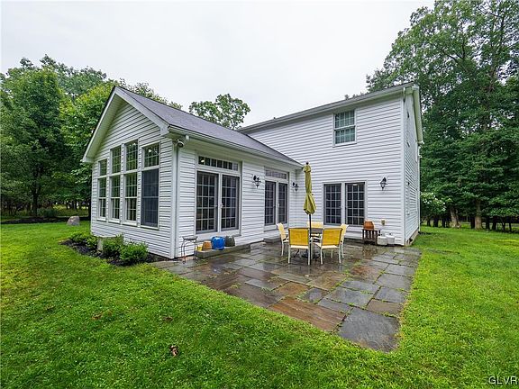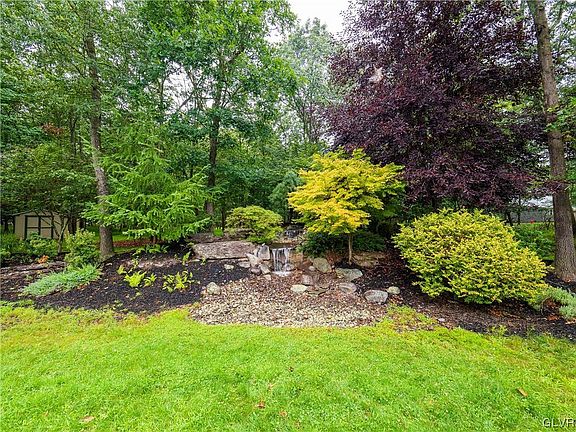 This stunning four-bedroom, three-bath home offers an open concept living room with cathedral ceilings that seamlessly connects to the kitchen, complete with a butler's pantry, built in wine racks, and breakfast bar. The first floor boasts immaculate hardwood floors and three sets of French doors leading to a beautiful slate patio surrounded by lush landscaping and a tranquil waterfall hardscape. Additional features include a formal dining room with a gas insert fireplace, a sitting room, and an exercise room that could be a den/office. The master bedroom and foyer also showcase hardwood floors. With updated features like granite countertops and two-zone central air, this move in ready home on 1 acre is a true gem! If you are looking for convenience blended with privacy, this home will not disappoint.