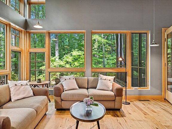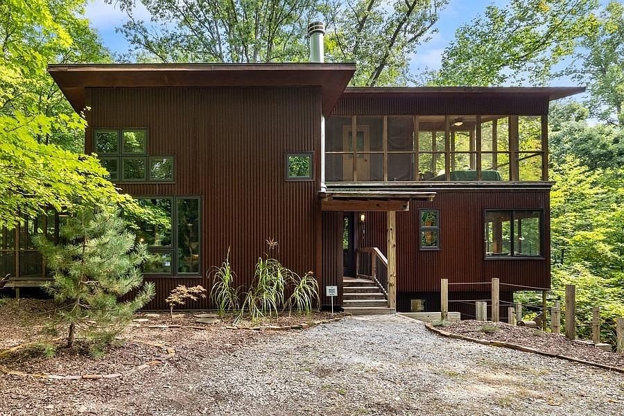 Welcome to Tryon Farms! Don't miss the opportunity to live in this highly coveted and conservation-minded community. This unique 3 bed/2.5 bath modern tree-house is tucked into the woods; offering privacy, tranquility, and beautiful views throughout the year as the large windows and high ceilings bring the outdoors in. The home boasts two screened-in porches (one designed as a sleeping porch), an open concept living/dining/kitchen area and a large walk-out basement. The open floor plan was designed with flexibility in mind as the bedrooms and the unfinished basement space can be easily converted into other usable spaces. There is ample opportunity to find a place for quiet solitude or for a lively gathering of friends and family. Stroll or bike Tryon's 5+ miles of trails spread over 120 acres of shared and preserved woodlands, pasture, meadowlands and pond owned by the Tryon Farm Institute; or swim in the eco-friendly pool. (Separate membership required.) Book your showing today!