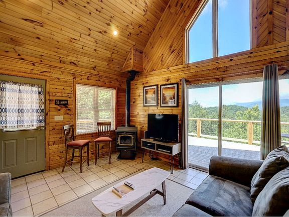 Outstanding panoramic views from this immaculate cabin. Minutes to town, paved road to the home. Successful vacation rental. Easy driveway, large side yard with hot tub and stone BBQ pit. Gorgeous Master Bedroom with great view. 2nd and 3rd bedrooms on main floor. Incredibly neat and clean. Perfect mountain getaway, peaceful and quiet. All this at a little over 2300' elevation, a stellar view that rivals homes at much higher elevations! Wood burning stove for chilly evenings relaxing in this beautifully furnished cabin. Minutes from town or Fontana Lake,