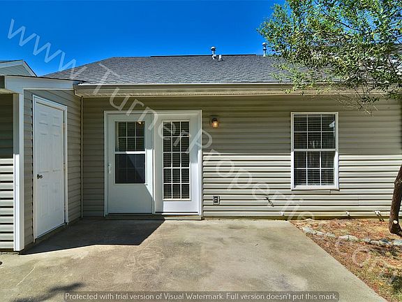Neat 2 bedroom, 2 full bath, end-unit patio home in the Twin Eagles neighborhood in Columbia. Two-car parking pad out front. Fenced backyard with patio and storage room. Updated vinyl plank hardwood flooring and warm neutral paint throughout. Kitchen off entry include white electric stove, dishwasher, and refrigerator. Open floorplan, dining room open to living with ceiling fan and gas log fireplace. Master suite has a full bathroom with shower and a walk-in closet which also includes full-size washer/dryer connections. Guest bedroom near the entry has an attached full bath that can also be accessed from the entry hall. Ceiling fans in both bedrooms. Ceiling fans in both bedrooms. Convenient location near Midlands Tech NE Campus, Northwoods Golf course, and a quick commute to Downtown, NE Columbia, and Ft. Jackson. Richland 1 Schools.