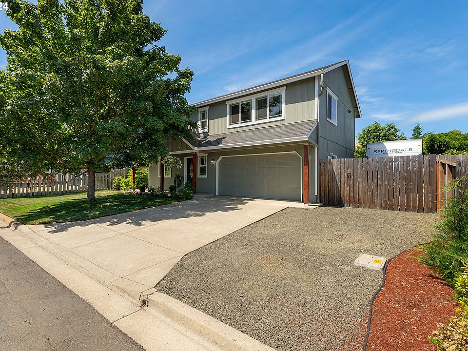WOW! Welcome to this move-in-ready 3-bedroom, 2-bathroom home, offering 1,447 square feet of comfortable living space! This meticulously maintained home features fantastic curb appeal with its inviting covered front porch and well kept landscaping. You'll appreciate the convenience of off-street parking, featuring a pull-through gate perfect for your RV or camper. Inside, the home has been beautifully updated with laminate flooring throughout. The vaulted ceiling in the living room and kitchen creates an airy, open-concept space ideal for entertaining. The updated bathrooms and indoor laundry room add to the home's modern comforts. You'll love the primary bedroom suite, complete with a walk-in shower, dual sink vanity, and a spacious walk-in closet. The 2-car attached garage offers plenty of storage and parking. Outside, the fully fenced backyard is beautifully landscaped with mature trees, a storage shed, and a private fire pit area. The backyard is a perfect hangout where you can enjoy the covered back deck and raised garden beds. With cheaper county taxes and an attractive neighborhood, you won't want to miss out on this one! Schedule your private tour today!