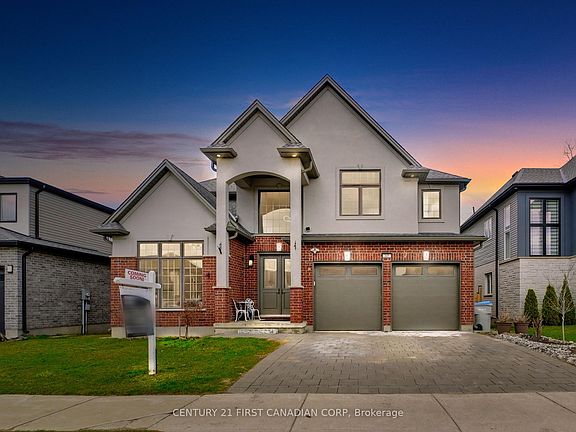 Your Komoka dream home! 3150 sqft 2-stry incl 900 sqft finished lower lev in a park-like setting. Freshly painted and brand new carpets, it offers 4+1 bedrooms, 3+1 bathrooms, attached 2-car garage, a large deck, and fenced back yard Backing Onto Mature-Treed Greenspace. A soaring 18 ft. high foyer, open to the 2nd floor Juliette balcony, floods the space with natural light. Off the foyer, step into the formal living/dining area, perfect for entertaining. Located at the back, the family room is the heart of this home together with its large gas fireplace open to the bright open-concept kitchen/dining area. The fully-equipped kitchen offers two-tone cabinetry with loads of storage that extends to the adjoining walk-through butler's pantry with access also to the front dining room. Gleaming quartz countertops, stone backsplash, and large windows convey a light and airy space. Clear sightlines from the kitchen through to family room and backyard allow you to interact with everyone while cooking and entertaining. Extend family fun and entertaining to the back deck and yard through the sliding doors off the family room. Extra closets, built-in storage, 2-pc bath, and garage access add comfort and convenience to the main floor. Retreat upstairs to your primary bedroom with luxury spa-like 5-pc ensuite, including double vanity, large glass-doored shower and inviting soaker tub just beyond the walk-in closet and storage area. 3 additional generous-sized bedrooms , 4-pc main bathroom and a 2nd floor laundry complete the upstairs. The finished lower lev offers more space to entertain and unwind with a large flex space tastefully finished with a feature wall and electric fireplace, a generously-sized 5th bedroom, an office/den and a 3-pc bath. This fully landscaped property exudes beauty, comfort, safety and functionality. Komoka boasts top rated schools, recreational, wellness and fitness facilities, as well as pet, dental and other health services and just 20 mins to London!