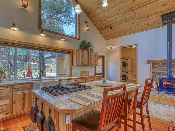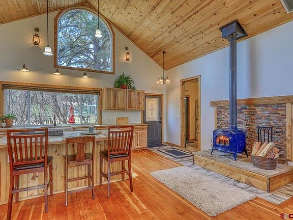 Escape the hustle and bustle to this serene, open and airy mountain cabin nestled near the heart of Pagosa Springs. Featuring 2 Bedrooms with attached bathrooms, a warm and inviting living space, tongue and groove ceilings, cozy wood burning fireplace, and large windows that frame the picturesque views. The kitchen features a farmhouse sink with a huge window above it, a built in island with a gas range, as well as ample counter space and cabinet storage. The mud room area offers additional storage shelves, washer, dryer hookups and a dog wash. Head out to the spacious 3 car garage to keep all your cars and toys protected from sun and snow. Need even more space? This one has it with a separate steel container with electricity and a lean-to, for even more parking and storage of all your tools and equipment, the enclosed garden area allows you to create your own farm to table garden. This home is surrounded by the stunning beauty of nature nestled in The Pines at Aspen Springs, offering a community water well, and ease of access to National Forest, the hot springs, ski area and a variety of other outdoor activities, including hiking, biking, horseback riding and fishing. With its tranquil setting and great location, this mountain cabin is the perfect place to call home. Don't miss this opportunity to own your own piece of paradise in Pagosa Springs, CO. Schedule a showing today!