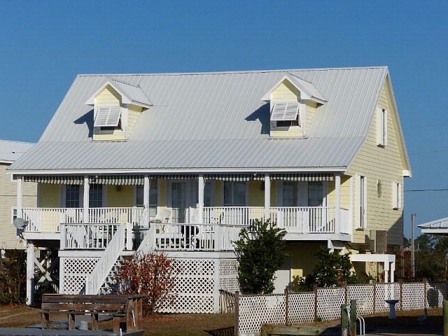 Great Waterfront Home on Little Lagoon. Just Footsteps from the Gulf of Mexico with your own dock and tons of outdoor deck space. Upgraded Kitchen and Baths(2016) with Granite and New Tile. Complete New A/C units. The interior is spacious and functional. Master BR on Main Floor with two BR's upstairs. New flooring upstairs. Great Storage room under and Great Metal Roof. Home has been a VRBO Rental for several years with great results. Great Parking underneath for several cars, boats etc. This is a must see