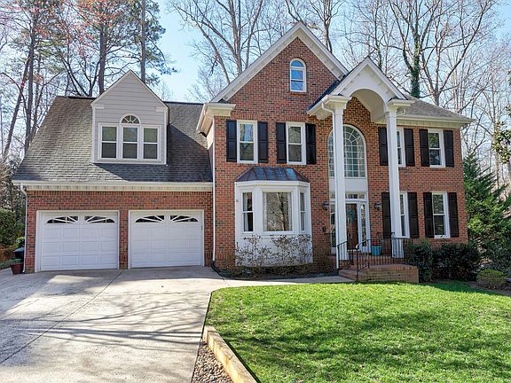 Welcome to this charming cul-de-sac home in Camden Forest, featuring three-sided brick. The home offers a traditional layout with an office, formal dining room, and a cozy family room. The kitchen is a bright and welcoming area, featuring new appliances, a spacious island, and a breakfast nook with views of the private backyard—an ideal spot for gathering and enjoying time together. Enjoy hardwood floors throughout the main level and brand-new carpeting as you head to the second floor. New hardwoods cover the 2nd floor hallway. The upgraded primary suite is a true retreat with a soaking tub and a frameless glass shower. Spacious bedrooms provide ample closet space. The bonus room offers extra functional space, complete with back stairs to the kitchen. Outdoors, the oversized decking provides a perfect setting for relaxation in the private backyard. The large walk-up attic offers generous storage or the potential for finishing. Recent updates include new windows, a water heater (2023), carpet (2023), and a gas pack (2024). This charming Cary neighborhood is in a prime location, close to greenways, parks, shopping, WakeMed Cary Hospital, Waverly Place, and major roads.