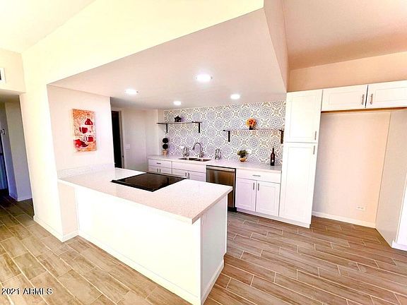 Spectacular City and Mountain Views from Just Remodeled 2 Bedroom, 2 Bath Mid-Century Modern Condo in Downtown Phoenix. Gourmet Kitchen with New Cabinets, New Quartz Countertops, Custom Tile Backsplash and Stainless Steel Appliances. Kitchen leads out to Great Room with New Plank Tile Floor, High Ceilings, Floor to Ceiling Windows with 9 Foot Tall Slider Leading out to Huge Balcony with Panoramic Views. Large Master Bedroom with New Carpeting, High Ceilings, Floor to Ceiling 9 Foot Tall Slider Leading out to Huge Balcony with Panoramic Views. Master Bath has New Cabinet, New Tile Floors and Custom Tiled Shower. New Flooring, New Paint, Lighting, Fans and Plumbing Fixtures Throughout the Condo. Additional features Include 24 hour Security/Concierge, Parking, Sparkling Pool, Workout Room