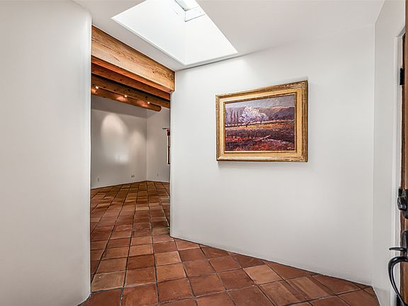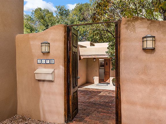 Designed and crafted in 2006 by Jesse Gries, award-winning Green Star Energy builder, this distinctive pueblo-style home captures the essence of Santa Fe living with quality craftsmanship, architectural charm and a serene sense of privacy. Ideally situated in a highly walkable neighborhood near Harvey Cornell Rose Park and approximately one mile from the historic Santa Fe Plaza, the property offers effortless access to restaurants, shopping and business amenities while remaining a peaceful retreat from city life. Although classified as a condominium, this residence lives like a single family home. The property is completely walled and fenced, featuring gated access and walkways surrounding the home, creating a tranquil and secure sanctuary within the heart of the city. The single-level floor plan (approx. 1489 sq.ft.) provides comfortable step-free living with three bedrooms and two full baths. Natural light fills the interior through multiple skylights, enhancing the spacious ambiance created by 11-foot ceilings with traditional vigas. The generous kitchen offers abundant cabinetry and a warm, inviting atmosphere for cooking and entertaining. Thoughtful design details include tasteful tilework in the kitchen and baths, tile flooring throughout and consistent in-floor gas radiant heating. A wood-burning kiva fireplace anchors the living area, providing cozy charm on cool Santa Fe evenings. Further upgrades include a newer roof and skylights (2025), newer Lochinvar water heater and LG laundry equipment. Ample storage space and three assigned parking spaces add to the property's convenience. The home offers a rare combination of privacy, comfort and proximity-nestled in a desirable, centrally located neighborhood that embodies the best of Santa Fe's architectural style and cultural vibrancy. Whether as a primary residence or a serene second home, this property represents a unique opportunity to enjoy refined Southwestern living in an exceptional setting.