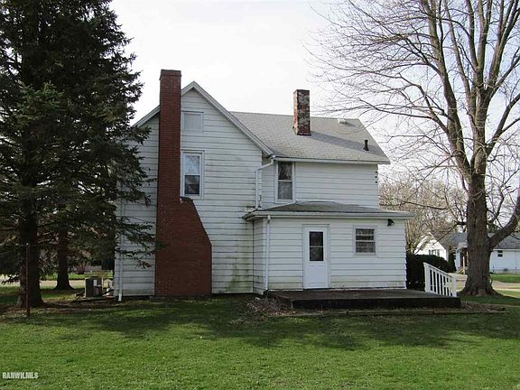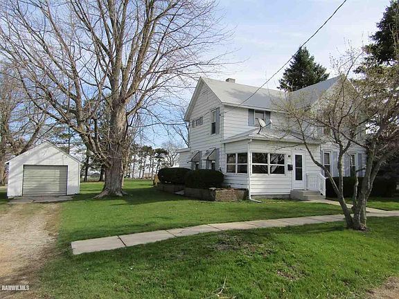 Take a look at this 2 story home. Entry is into an enclosed front porch. There is a dining room with closet. The kitchen offers L-shaped cabinet and counter space. The large living room features a striking stone wood burning fireplace with book shelves on either side. The second story is accessed from a closed stairway in the dining room. The upper level has 3 bedrooms and a full bathroom. There is a single detached garage west of the home and a brick grill in the back yard. Call today to schedule your personal showing.