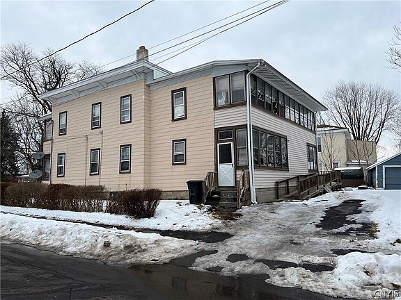 Back On Market! Village of East Syracuse 3 unit. 2 apartments on the first floor with 2 bedrooms each, dining room and large living room. The 2nd floor is one apartment with 5 bedrooms, 2 full baths, large dining room and living room. Was 2 units combined. Back and front screened-in porches (upper and lower) with separate entrances. All separate utilities, except water. Two driveways with ample space, quiet neighborhood. Rents are definitely low. Room to improve the units and add more value. May only be able to see the bottom left apartment possibly upper apartment and basement at this time, all units rented. Market rents for bottom apartments when updated: $1000/mo each. Upstairs 5 bedroom 2 full bath apartment as is @ $1800 2022-06-11