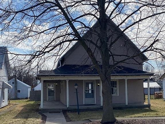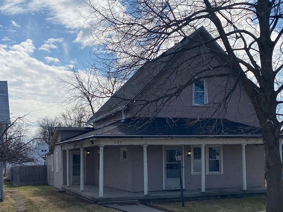 Nice two story home located in Historic Farmland on dead end street with large living room, 2 detached garages and storage shed. Main garage is a mechanic's dream. Large 27X24 two car garage with 10'+ ceilings, drain in floor and 60,000 BTU gas heater. Home has many updates including new 30 year shingle roof added September 2021, High efficiency gas furnace, 200 amp electrical, some double hung replacement windows, new vinyl flooring in the kitchen, new surround and faucet in bathroom, new window blinds throughout, new door locks on house and garages and entire interior has been freshly painted. This home also has lots of character with wrap around porch, French doors off living room, 2 separate gas lines ready for you to add fireplaces and hard wood floors throughout. Kitchen offers oak cabinets, gas range, refrigerator and dishwasher. Washer and dryer are included and located in huge back room with lots of storage space or additional living space. Seller also left already purchased vinyl siding in small garage for home. Home office could also be 3rd bedroom.
