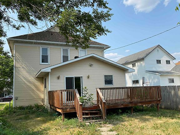This classical 2 story home located in downtown Rockford Iowa features, open staircase, hardwood floors throughout, crown molding throughout, 3 bedrooms and newer 3/4 bathroom upstairs, living room, formal dining room, newer kitchen cabinets , full bathroom, and utility room on the main level. A front covered porch and rear yard deck, newer electrical work, vinyl siding, and replacement windows complete this graceful home.