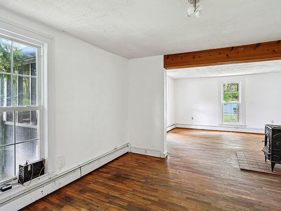 Old character home now available in Savoy!! This 3 bedroom home has two bedrooms on the main floor, and a lofted style bedroom upstairs with an additional living space up there too! Much of the flooring here is original hardwood, and has been kept in great shape. The kitchen has plenty of countertop space, and two large skylights bring tons of natural light to this space. Outside, the lot is private and massive! There is a big concrete back patio, and also a detached garage perfect for storage and a workshop! Worth noting is that this home has a brand new boiler as well!!! With a little bit of sweat equity, this home can be turned into a gem...come see it quick!