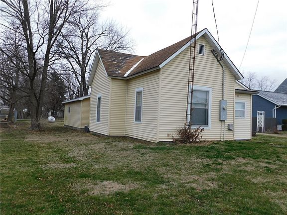 Home has two large holes in the roof and has damaged ceiling and possibly floor below. Two bedroom home with large attached garage in good location just a block west of the town square. Driveway for the home off Rte 121 appears to be a Village alley.