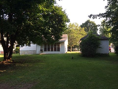 Quaint home on quiet street. This 2 bedroom, 1 bath home has all the comforts you will need. Has an eat-in kitchen, because, let's be honest, kids sometimes need to eat in the kitchen. Yet for the big Sunday dinner, there's a dining area adjacent to the ample living room. Book shelf wall in the dining area can be your library, or display your favorite collection. Enjoy cool evenings or early mornings relaxing on the covered front porch. Out back is a large yard ready to be customized to fit your lifestyle. 1 car detached garage, and enclosed back porch have all the space you'll need for tools and toys alike. 7 year old furnace and 6 year old central air are even more pleasing with the whole house fan to keep you comfortable year round.Property being sold as-is
