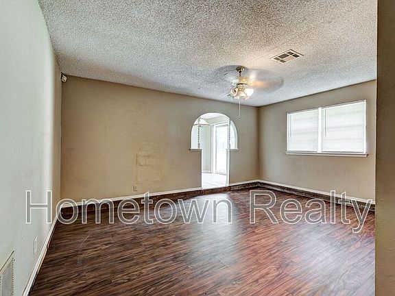 Tucked away off Midwest Blvd and NE 10th Street, you'll fall in love with this cozy three bedroom home with new flooring throughout! Our favorite features include the arched doorways, textured entryway walls, large windows throughout and huge kitchen complete with dining nook. Main suite has attached half bathroom and walk in closet; an oversized hallway bathroom is nestled between the other two bedrooms and has great cabinet space. Kitchen comes with stove/range and has full size laundry connections in garage. Backyard is fully fenced and pets are welcome with prior approval, monthly pet fee and additional deposit.