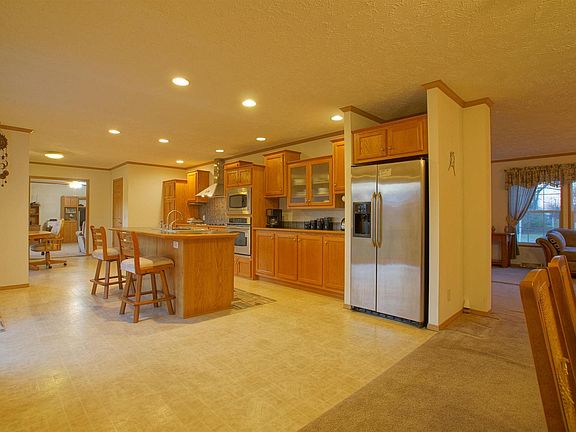 In the country setting with a home that has 2,356 sq. ft., 3 bedrooms, 2 bathrooms, a large 30' x 24' attached garage, a 40' x 30' pole barn, and a 14' x 12' storage shed all on 1.26+/- acres. This home features a split bedroom floor plan and an open concept that greets you as you enter the house into the living room that connects to the dining room that leads into the large fully appointed eat in kitchen with island and breakfast bar and a slider door looking out over the backyard. On the other end of the kitchen you'll find the large family room that attaches the kitchen to laundry/utility/mudroom room with a garage entrance. All of the appliances including the garage freezer are included. Large master suite, 2 generous sized bedrooms all with large closets and another full bathroom complete the house tour. Outside you'll find a newer 14' x 12 'storage shed, a 40' x 30' barn complete with horse stalls and shop area, and a large yard with some remaining fencing. Barn has water and electric for many possible uses. This property has a lot to offer and is ready to move into.