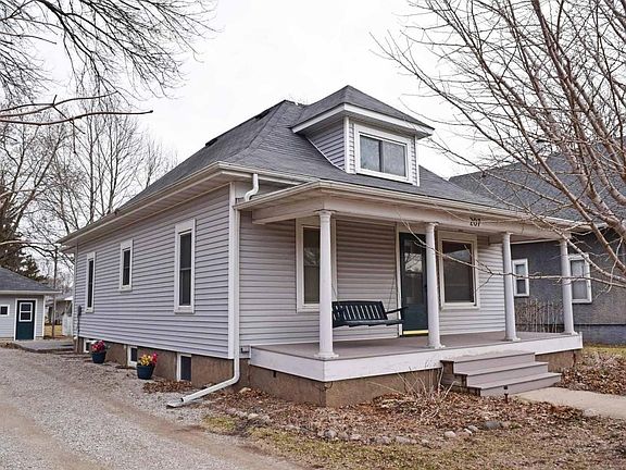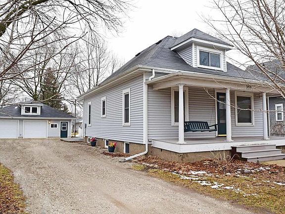 Enjoy all the features this home has to offer including beautiful hardwood floors and original oak columns and bookshelves in the living/dining area. Two main floor bedrooms with a large finished attic that can be used as a 3rd bedroom or family space. The home offers many updates including the kitchen and bathroom. Large open porch for those cool evening enjoyment and an enclosed mud room entrance for coat and shoe storage. Solid foundation. Large over-sized 2-car garage with additional storage. Great location to a school