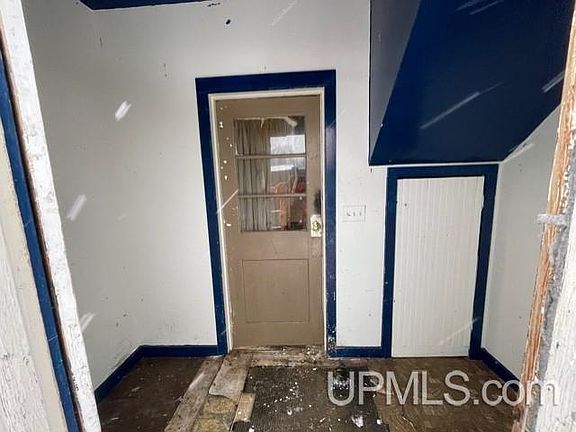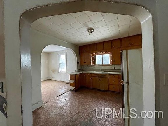 Fixer upper out in the country with tons of potential. This three bedroom home sits on two and one half acres of beautiful rolling topography. The eat in kitchen has high ceilings and plenty of cabinets. The open concept between the kitchen and dining room is highlighted by an archway. The living room, laundry and full bath complete the main level. Bathroom is non functional at this time. Up the wooden staircase you will find three bedrooms. Many rooms have original hardwood floors and woodwork. A full basement can be accessed from both inside and outside. The home is log under the siding. Several outbuilding including a log structure could be utilized after some TLC. The rolling topography is home to berries, apple trees and woodland creatures. Close to many lakes, rivers, streams and open hunting land. Property being sold in an "AS-IS" condition.