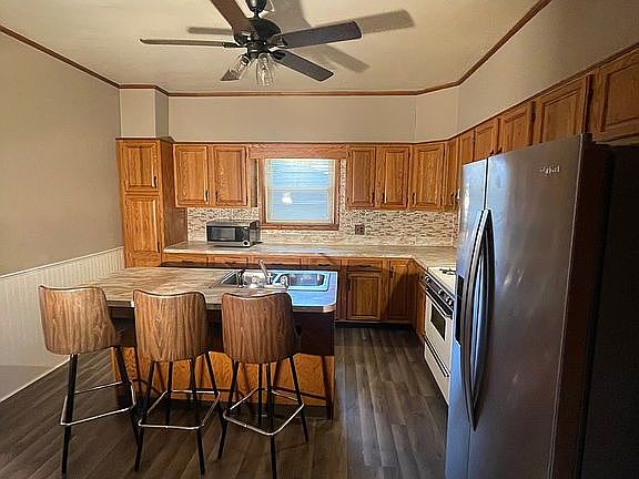 Four bedroom, one bathroom home with unfinished basement, attached one car garage, sunroom and deck. 864 sq ft detached two car garage with two bays. Appliances will stay.