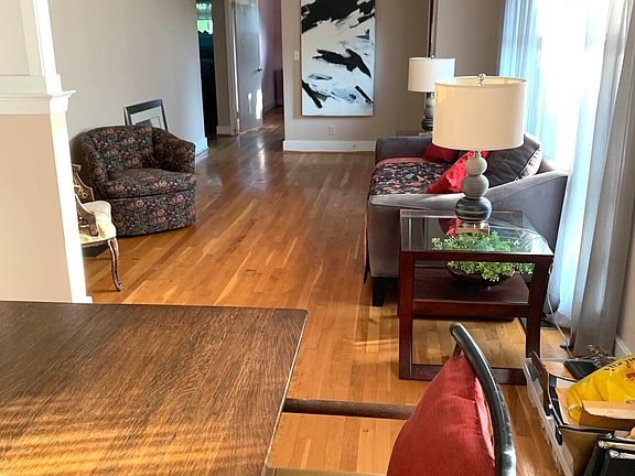 The house is a contemporary ranch style house with a fully finished, walk out basement. The back yard is completely fenced with a large pecan tree dominating the yard. The houses in this neighborhood were built in an existing pecan orchard and there are still two original orchard trees on the property. The house itself has lovely original, refinished hardwood floors upstairs and porcelain tile downstairs. There are two great room living areas. Upstairs, there are three bedrooms, two full baths and a bonus room off the kitchen. This space offers a hinged table that folds up into the wall, creating opportunities for additional floor space as needed. Beyond the Kitchen/Bonus Room is a large Trek deck that overlooks the back yard. A mature Crepe Myrtle towers beside the deck and flowers into late summer. Continuing upstairs, the large Living Room/Dining area has a picture window with great light. Moving to the lower level and entering the back yard from the basement living space, you would find a large, newly resurfaced patio that is great for entertaining. Inside this lower level, is a large great room, a full bath, and a fourth bedroom with a huge closet. There are also two large storage areas discretely hidden in the layout of the downstairs floor plan. The finished basement opens onto a spacious patio area that features a long brick retaining wall and a mature backyard. There are banks of irises. hydrangea and day lilies that grace the yard. There are beautiful red buds and crepe myrtle as well as flowering shrubs. The front yard has a glorious azalea that embraces the full front porch. There is an outdoor storage space beneath the upper deck and that is convenient for housing lawn mowers and miscellaneous garden equipment.