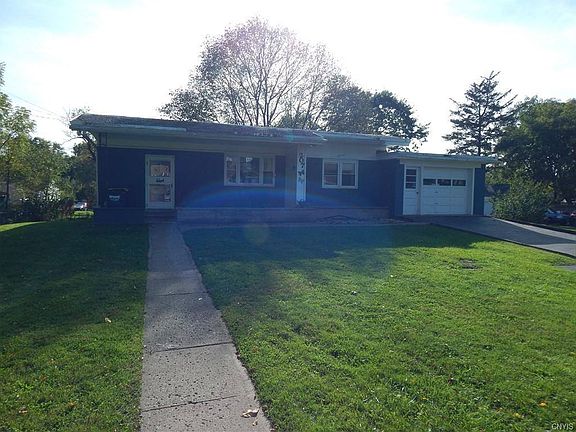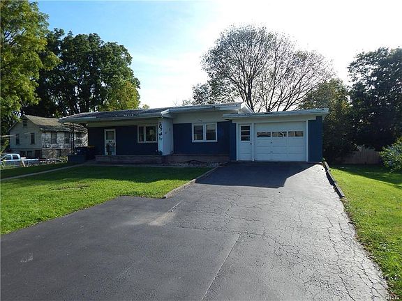Welcome to this unique 4 bedroom 1 bath ranch set on a double lot in the West Genesee School District. This home has been well maintained and cared for over the years by the original owner. Adorable covered front porch perfect for enjoying your morning coffee. On the inside, you'll find a large living room, breakfast room, galley kitchen, 4 nicely sized bedrooms, and a full bath with tub and shower. Rare terrazzo tile throughout the house. Partially finished walkout basement with a pool table that stays, washer and dryer that stay, workshop, and fruit cellar. Many new updates including a new sump pump, re-roofed garage, new thermostat, new rug in the living room, hallway, and bedroom. New refrigerator, new locking mailbox, newer Lennox furnace cleaned annually, and vinyl windows. This home has a commercial rubber membrane roof and a one-car garage with a newer garage door opener. Beautifully manicured large yard, all of this located in the West Genny School District, convenient to highways, and township 5. ***No showings until Friday, October 15th at 10:00 AM*** No negotiations until Monday, October 18th at 5:00 PM***