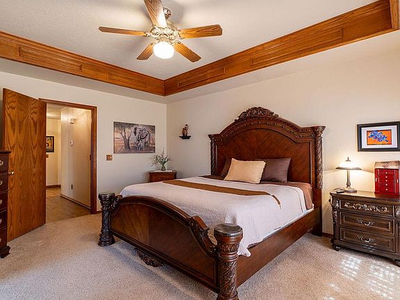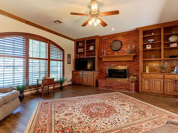 Clinton, OK Home for Sale. This charming Clinton, OK home has 1,809 sq. ft., 3 bedrooms, 2 bathrooms and is handicap accessible. The welcoming foyer serves as the central hub of the house, open in all directions for access to the living room, kitchen and bedrooms. Step left into the living room that hosts built-in oak cabinets on either side of the brick fireplace. Linking the living room to the kitchen is the open dining area full of natural light from a large window and French doors to the back patio. The airy kitchen has ample counterspace and custom-built hardwood cabinets. A new dishwasher and gas smart stove have been recently installed. A tray ceiling and ceiling fan top off the spacious main bedroom, which connects to its own expansive bathroom hosting a jetted bathtub, separate shower and two walk-in closets. The home has a two-car attached garage including built-in storage for tools, equipment and much more. The Western Oklahoma home includes a curved patio which makes an ideal space to entertain family and friends. An above ground storm shelter is located in the backyard. A detached storage building offers extra space for your tools, equipment, or hobby gear, keeping your living areas clutter-free. The cozy manicured backyard is edged with a raised wooden fence for complete privacy. This Custer County, OK home is located in the Clinton Public School District and access is available to Arapaho/Butler Public School, Western Oklahoma Christian School and Corn Bible Academy.
