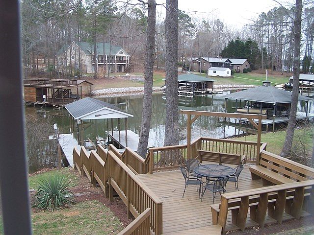 MOTIVATED SELLER SAYS MAKE OFFER on this delightful lakeside getaway! This fully furnished ranch provides large central open living area w/split floor plan of master suite on one end; 2 guest BRs+BA on opposite. Family area, dining & kitchen all open, light, airy & adjoins small uncovered deck for grilling + the perfect sized screened porch for relaxing and enjoying Lake Gaston! Amenities include a great wooden walkway to an open deck area for sunning, relaxing, eating and continues on to the single boathouse/dock (composite) with boatlift and pwc lift; lovely landscaping/lighting w/sprinkler system and large storage shed w/wide double doors. All located in a small upscale, family-oriented subdivision on a short main lake cove that offers quick access to the main lake for great fishing, water activities or just plain 'cruising', all only 20 minutes from I-85.
