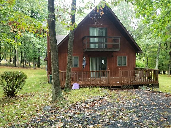 Opportunity calls! With some elbow grease and imagination, this 3 bed, 2 bath Chalet can be your cozy home in the Poconos! The home features 1 car garage, large yard, knotty pine ceilings in the living room, and open floor plan. There is so much potential to make it your own!