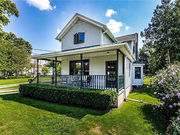 Country in the village. Discover the charm of this three-bedroom colonial nestled on a picturesque, beautifully landscaped, half-acre lot featuring an inviting in-ground pool tucked behind the 2-stall barn style garage with pool room. The lovely home offers a 3-season room overlooking the beauty of the property, casual and formal dining spaces, 3 sizable bedrooms, a full bath on each level, 1st floor laundry, open front porch, and a cozy wood stove. Property is in an A2 flood zone. Elevation study available. Seller has never had a flooding event and currently pays $650 annually for flood insurance. Buyer should check rates in advance of making an offer.