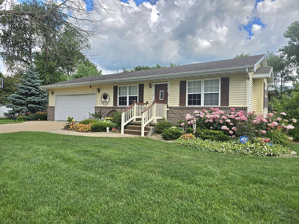 New Listing! Lovely updated 3 bedroom, 2 bath ranch in quiet Belmont Acres Subdivision! You'll fall in love with the outdoor paradise! So much effort, time & money was spent to make the yard beautiful! Flowers galore, unique bridge & trail out back & awesome view beyond! There is drip irrigation around the house, a freshly painted deck & newer sidewalk & front porch. The roof is only 10 years old with lots of life left. The garage, attic & laundry room has great storage. This house is not located in the flood zone. Come & see this beautiful property!