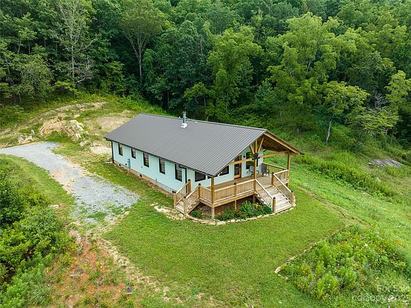 Custom-built 3 bedroom 2 bath home on beautiful south facing 8.69 acres of rolling pasture and mature forest located in the highly desirable and wonderful community of Sandy Mush! Completed in Aug 2022, constructed with 2x6 framing, cement board siding, metal roofing, seamless half-round gutters, spray foam insulation, Ply-Gem metal clad wood windows, vaulted ceilings throughout, Mitsubishi mini-splits, Hearthstone wood stove, hickory hardwood floors, tile bathrooms, and oversized live edge kitchen island with seating. Open floor plan with vaulted ceilings, exposed beams and lots of windows providing tons of natural light. Enjoy long-range views from large covered porches. Underground utilities with fiber internet. State maintained gravel road with scenic views. Rear adjoining properties are in the Buncombe County Voluntary Agricultural District program. Many varieties of fruit bearing plants. Room to expand with multiple build sites. Conveniently located just 30 minutes to Asheville.
