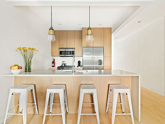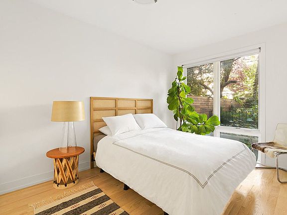 The Classen is a boutique condominium in Boerum Hill that offers elegant design and modern living in this highly coveted neighborhood. This two-bedroom, two and a half bathroom condo is a complete gem. The modern facade of brick and copper makes for a striking entry into the thoughtfully designed garden duplex apartment. Upon entering through the front foyer, you are met with the open kitchen and expansive living/dining space on the upper level with pristine white oak hardwood flooring with a bleached white finish. No detail was left to chance. The kitchen is outfitted with Shinnoki Desert oak cabinetry with custom brass pulls, polished Calacatta Gold Quartz countertop and backsplash, and stainless steel appliances from Fisher and Paykel and Bosch, making it a dream to use and entertain in. The open floor plan looks out to a lush 25-foot wide private garden that is tastefully landscaped and complete with a water/irrigation system. There are two ample sized bedrooms on the first floor with the second one overlooking the garden. The front hallway brings you to the master bedroom and master en suite bath boasting graphite limestone flooring with radiant heat, white marble walls, and a marble mosaic shower. The bathrooms enhance the comfortable elegance, including Maxx tubs, Robern mirrored medicine cabinets and custom vanity lighting from Park Home Studio and Schoolhouse Electric. A beautiful angular staircase leads you down to the lower level; a bright, open flexible space, which allows access to another large private outdoor terrace with a gorgeous mahogany wood staircase leading you to the outdoor space above. This split level outdoor space is perfect for entertaining and creating a peaceful oasis in the heart of Brooklyn. A half bath, laundry room, and large private storage room complete this level. The leafy blocks of Boerum Hill offer the perfect balance of neighborhood charm and big-city access with just a five-minute walk to all major Subway lines at Atlantic Barclays Center. Enjoy local favorite foodie haunts such as Rucola, French Louie, Building on Bond, and Michelin Star restaurant Mile End Deli. Please email for a private appointment.