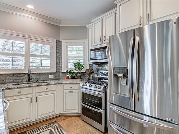 Impeccably maintained townhome in coveted Friedberg Village offers more than you can imagine. Granite, stainless appliances, premium cabinets and hardware, custom pantry, hand crafted wainscoting, plantation shutters, custom paint, wood flooring, crown molding, double sided fireplace. Sun room has stone fireplace and tile flooring. Custom closets, pocket doors, custom cabinetry in primary bath, trey ceiling in primary bedroom, huge bonus room, walk in attic storage. And the oversized private patio overlooking woods and creek...a gardener's dream with extended terrace surrounded by hundreds of flowers and plants. Retractable awning and hose irrigation system throughout flower and shrub beds.