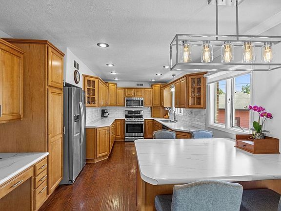 WELCOME TO THIS CHARMING BRICK HOME IN WEST PARK SUBDIVISION. THIS BEAUTIFULLY UPDATED NON-TRADITIONAL BI-LEVEL HOME BOASTS 4 SPACIOUS BEDROOMS AND 2 BATHS, OFFERING AMPLE SPACE! THE HEART OF THE HOME LIES IN THE WELL-APPOINTED KITCHEN W/ BUILT-IN DINING TABLE W/ CABINET STORAGE UNDERNEATH. KITCHEN FEATURES SOLID WOOD CABINETS, S/S APPLIANCES & PLENTY OF COUNTER SPACE. DINING/HEARTH ROOM IS ADJACENT TO KITCHEN W/ STONE GAS FIREPLACE & WALKS OUT TO A LARGE NEWLY PAINTED DECK. THE PRIMARY BEDROOM HAS ACCESS TO UPDATED MAIN BATH WITH PRIVATE VANITY AREA. ADDITIONAL MAIN FLOOR BEDROOM OFFERS VERSATILITY FOR GUESTS, A HOME OFFICE, OR A PLAYROOM TO SUIT YOUR LIFESTYLE NEEDS. BASEMENT LIVING AREA FEATURES A GAS FIREPLACE, 2 BEDROOMS, ADDTL BATH AND LAUNDRY. BACKYARD IS A GORGEOUS RETREAT WITH A LARGE PATIO, BEAUTIFUL LANDSCAPING, FENCE & SHED FOR EXTRA OUTDOOR STORAGE. NEW CARPET AND UPDATED ENGINEERED WOOD FLOORING. NEW PAINT THROUGHOUT HOME. SCHEDULE YOUR SHOWING TODAY!