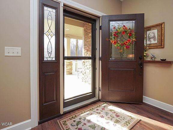 AN AMAZING HOME WITH QUALITY AND HIGH-END FEATURES THROUGH-OUT! SITUATED ON 4 LANDSCAPED ACRES. LIVING ROOM FEATURES A COFFERED CEILING AND A DOUBLE-SIDED STONE GAS FIREPLACE. GATHER IN THE HIGH -END KITCHEN WITH GRANITE COUNIER TOPS, BOTH AN OVERSIZED GRANITE ISLAND AND DINING AREA SEATING, A WALK IN PANTRY, AND SO MUCH MORE. THE HOME OFFICE CAN ALSO BE A 4TH BEDROOM. THE MASTER BEDROOM WITH TRAYED AND LIGHTED CEILINGS IS STUNNING. A MASTER BATH FEATURES A WALK IN SHOWER & WALK IN CLOSET. A FINISHED ALL SEASON ROOM WITH A FIREPLACE AND LARGE WINDOWS OVERLOOKS A COUNTRY VIEW AND LANDSCAPED BACKYARD. RELAX ON THE COVERED MAINTENANCE FREE DECK. THE FULL POURED BASEMENT HAS HEATED FLOORS! ALL MECHANCIALS ARE CONVENIENTLY LOCATED IN ONE AREA FOR EASY ACCESS. A PLUS IS THE WHOLE HOUSE GEOTHERMAL HEATING SYSTEM ALONG WITH A PROPANE FURNACE FOR THE BEST IN WARMTH AND COMFORT. THE WATER SYSTEM INCLUDES BOTH A WELL AND A CISTERN., AN OVERSIZED 825' SQ. FT. GARAGE OFFERS THE BONUS OF EPOXY FLOORING & AUTOMATIC GARAGE DOOR SCREENS. NEWER OUTBUILDINGS: A 64 X 50 POLE BARN WITH HEATED FLOORS, GEO THRMAL HEAT, FULL BATH, AND ABUNDANT STORAGE. ADDITIONAL POLE BARNS INCLUDE A 40 X 16 AND 24 X 16.
