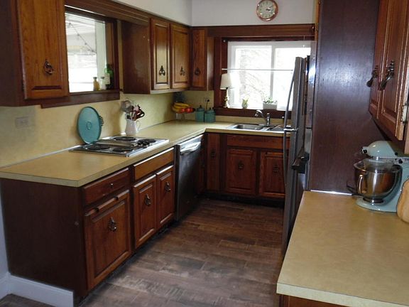 Brick ranch on the outskirts of town. The first floor offers a large living room with hardwood floors and gas fireplace. formal dining room. sun porch and covered back deck. The lower level has a partially finished rec room with wood burning fireplace. 2 car garage / workshop. and possible 3rd bed room. The back yard offer a private area for your fire ring.