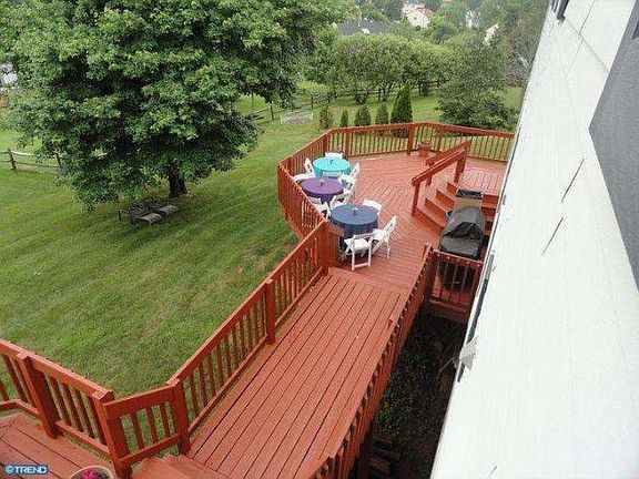 Welcome to the community of Estates of Doylestown located in desirable Central Bucks School District. This traditional colonial has been well maintained and updated through-out. Upon entrance you are greeted with stately custom double doors, hardwood floors, two story foyer and staircase. The expansive kitchen showcases new tile floor, granite, center island, newer appliances and a spacious in eat breakfast room. The dining room is formal with hardwood floors and large bay window. The formal living room has neutral coloring carpets and double doors leading into the family room. The family room offers a brick fireplace, neutral carpeting, wet bar and glass doors leading out onto the deck. The main suite is large in scale with sitting area, professional office, walk-in closet and laundry room for your convenience. Three additional bedrooms all generous in size share a full hall bath. The unfinished walkout basement has 10' ceilings, workshop and glass sliding doors that awaits your finishing. The exterior of the home has been well maintained with professional landscaping, EP Henry pavers and wall, two tier deck that expands the entire length of the home with great views. A three car garage with center drain, pull down stairs, 2 x 6 construction, central vac system, solid wood doors and trim, public water and sewer. Centrally located to shopping and friendly commuting to turnpike and main arteries for traveling.