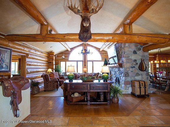 This mountain retreat is the perfect place to call home. Peace and quiet, views and fresh air, just minutes from town etc. This TRUE log home has it all! Spacious with a steam shower, dual sided river rock fireplace, a deck to enjoy your coffee & MORE. A private playground...whether it be horses, four wheelers, bikes or fishing, gardening, golf or hiking, its all right here. 5 stall horse barn boasts 12x12 stalls, tack room, bunk room, shop area and plenty of room for hay or machinery. Irrigation water for the fields and numerous fruit trees is just a big bonus! 30+ acre common area offers additional horse pasture, a spring fed & stocked fishing pond plus access to the Roaring Fork River!