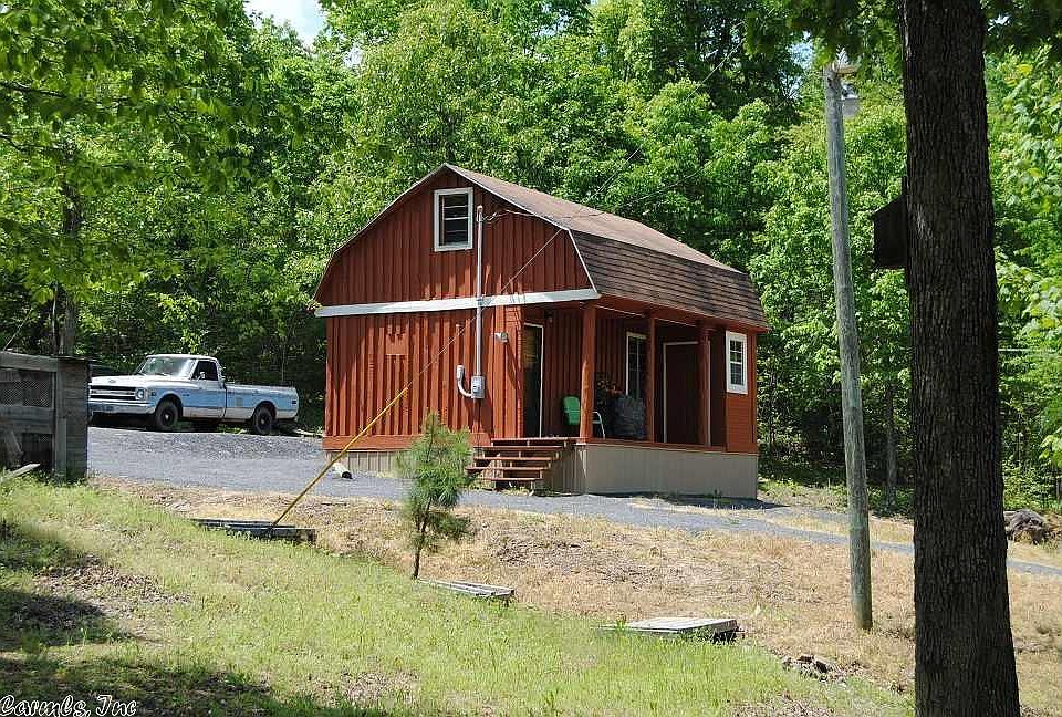 20 acres , with a recent survey and new fence, nice view, one bedroom cabin, underpened , insulation, rural water, Petit Jean Electric, excellent hunting, see game daily, pond , stocked, 200 amp, service, all wooded, blue rock from drive way to back of home, 8 miles to Marshall, app. 2 miles of gravel, tongue and groove wall in main floor and sheet rock in top parts, ceiling fans, new storm door, awesome view sitting on a really nice front porch, 14 miles to Buffalo River, Black bear spotted on property,
