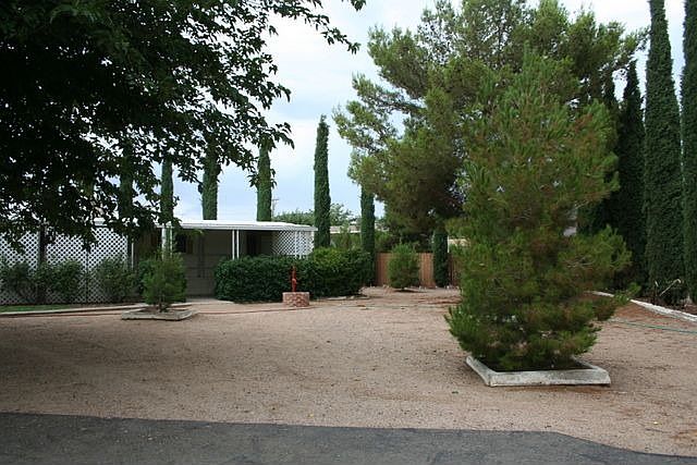 LOVE THIS YARD...Oversized Double Lot, fully fenced with mature tees, roses, grapes, etc all on an automatic drip system. Nice 21 X 27 detached garages, storage shed and 14 X 56 Mobile. This home has 2 bedrooms and 1 bath with a fully enclosed patio and separate covered patio. Gas stove, fans and refrigerator, washer & dryer stay. Owner may carry with $25,000.00 down.